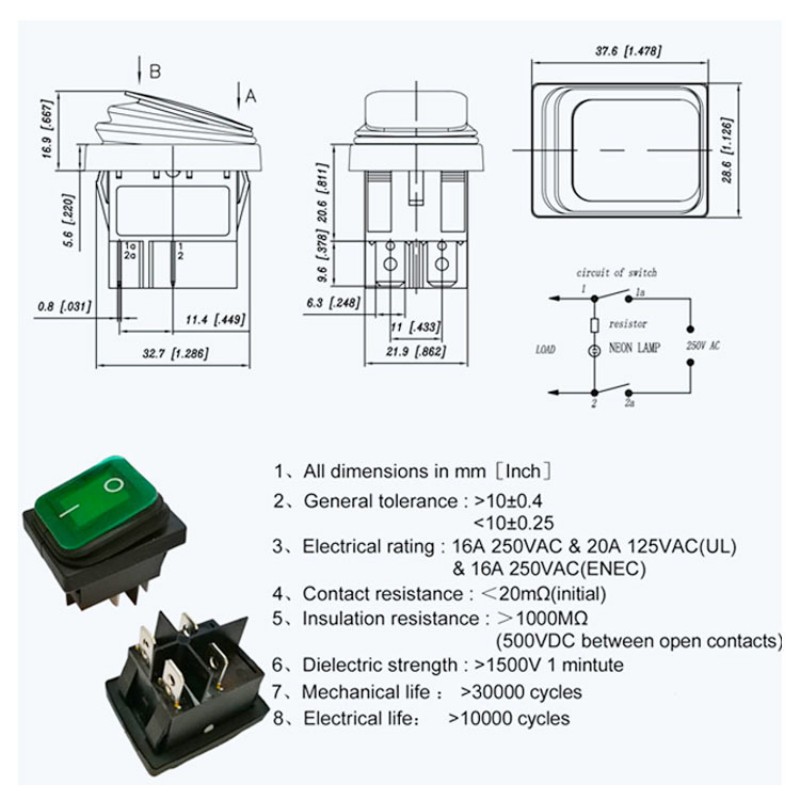 Detalii întrerupător basculant TongDa