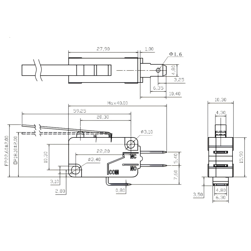 Declanșare precisă în milisecunde: Utilizează un mecanism rapid cu acțiune rapidă, cu o cursă scurtă de 0,5-1,6 mm și forță de operare reglabilă de 0,25-4N, oferind un răspuns rapid și fără întârzieri pentru a preveni eficient „declanșările false”. Potrivit pentru scenarii de înaltă precizie, cum ar fi comenzile ușii cuptorului cu microunde și senzorii industriali.