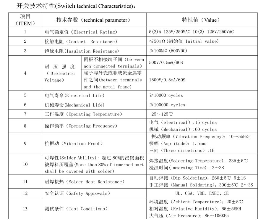 | 1 | Evaluare electrică | 5(2)A 125V/250VAC 10(3)125V/250VAC | |
