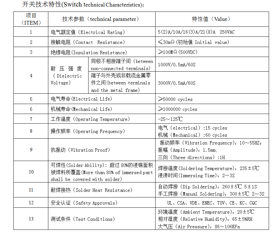 | 2 | Rezistența de contact | ≤30mΩ Valoarea inițială | |