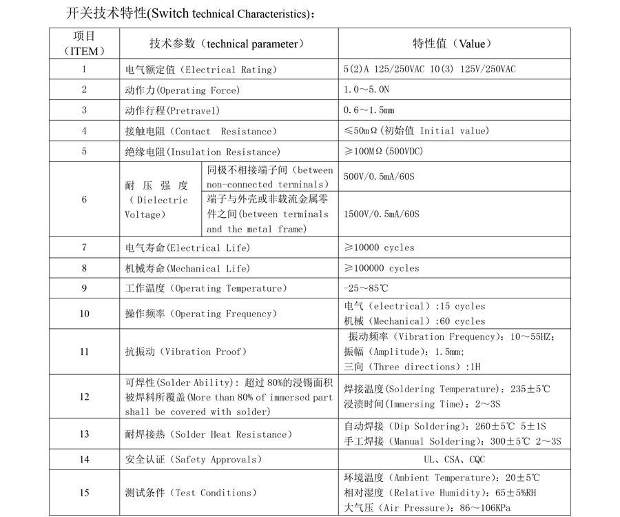 | 8 | Tensiune de rezistență: între terminal și terminal 500V/60S/0,5mA; |