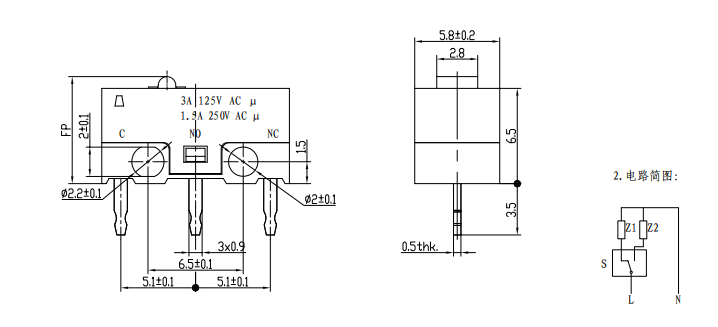| 1 | Rating electric: 1A/3A 250VAC |